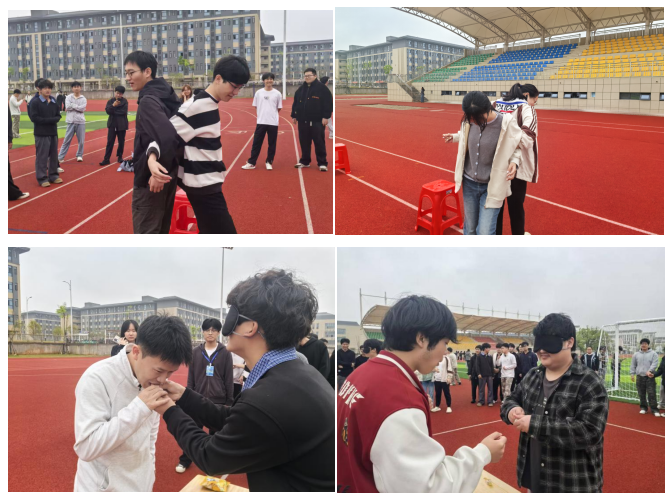 蒙眼喂食环节中,选手两两一组,一人蒙眼、一人指挥,通过语言引导完成喂食任务。大家在互动中增进理解、传递信任,在欢声笑语中拉近彼此距离,充分体现了趣味运动的互动乐趣与情感价值。