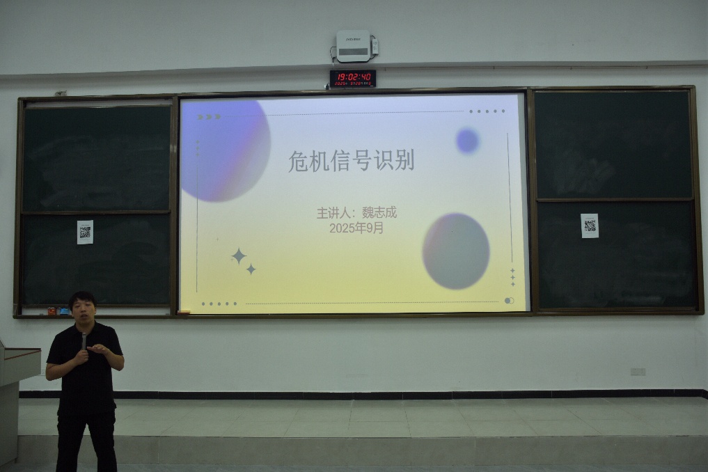 培训过程中,魏志成老师紧密结合大学生心理发展特点与真实案例,围绕三大核心模块展开细致讲解:一是聚焦日常心理互助实用技巧,通过情景模拟与方法拆解,指导学生骨干以温和、专业的方式与有情绪困扰的同学沟通,切实传递支持力量;二是针对心理骨干在帮助他人过程中的情绪消耗问题,系统分享自我心理调节方法,强调“先关照自身,再助力他人”;三是明确心理危机信号的识别要点与规范上报流程,结合典型案例剖析易被忽视的危机表现,确保骨干们能精准识别、及时上报。